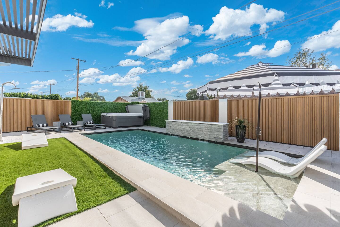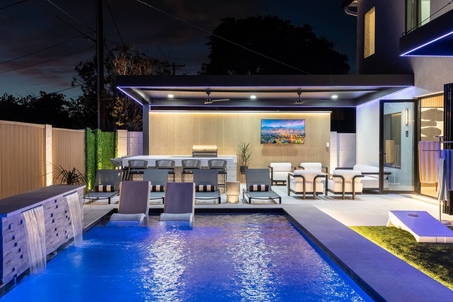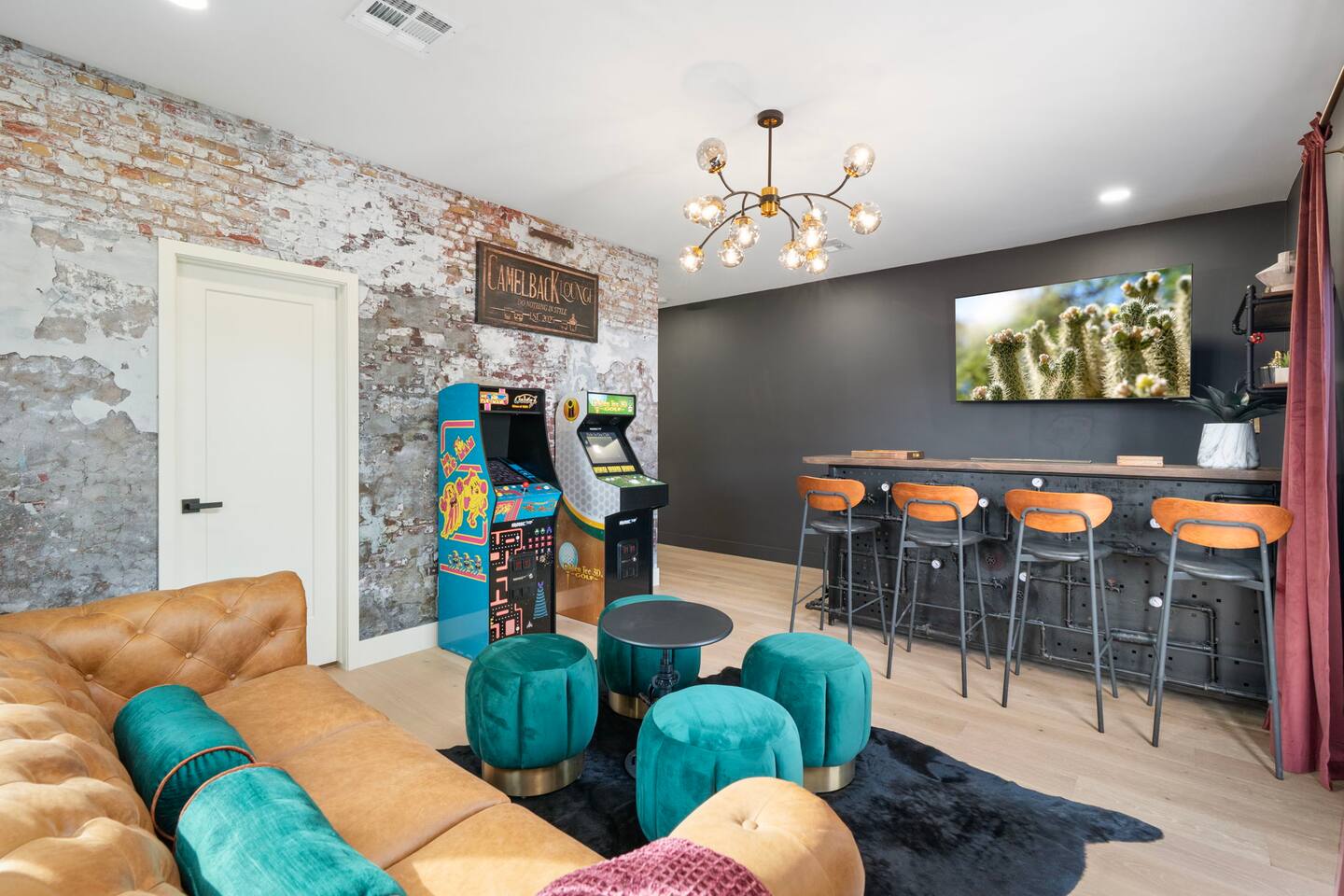 Top 1% of airbnb hosts in AZ & 100's of 5 Star reviews, Hot New luxury compound! 5-Star Resort style backyard! *Heated Pool & Spa, Arcade Room. A 5-min trip to the heart of Historic Old Town Scottsdale. The luxury new build home is in Arcadia's most sought after neighborhood. High end designer furnished & no expense spared. Ideal for those who like the finer things, families with kids, business travelers, adventurers & couples. 5G Wi-Fi6 router for Zoom meetings. POOL HEAT SEE DETAILS
