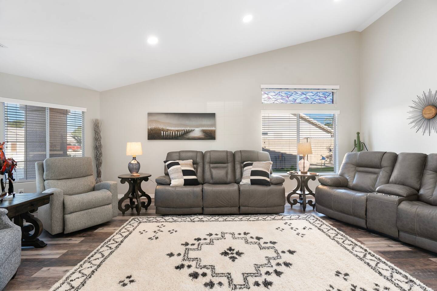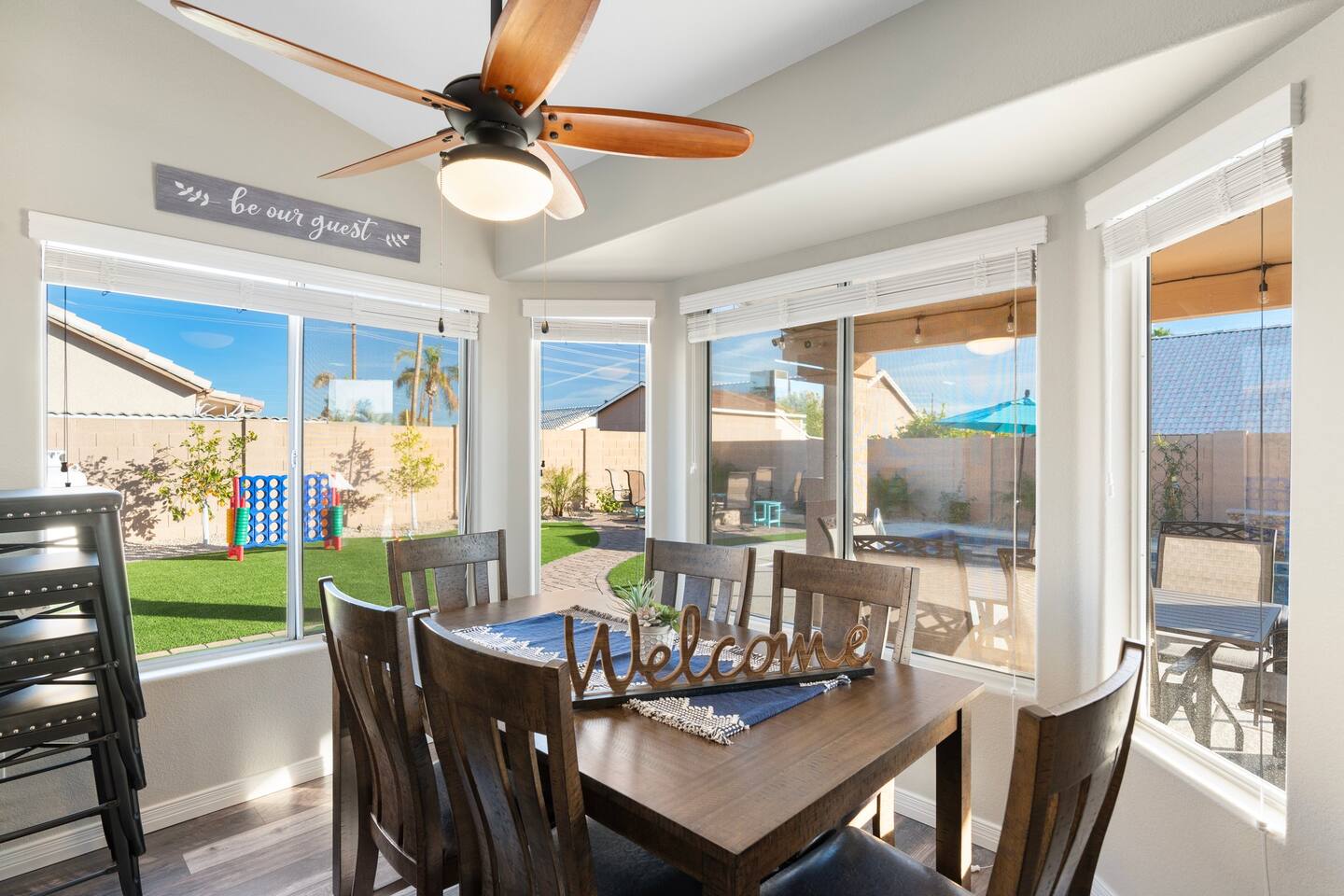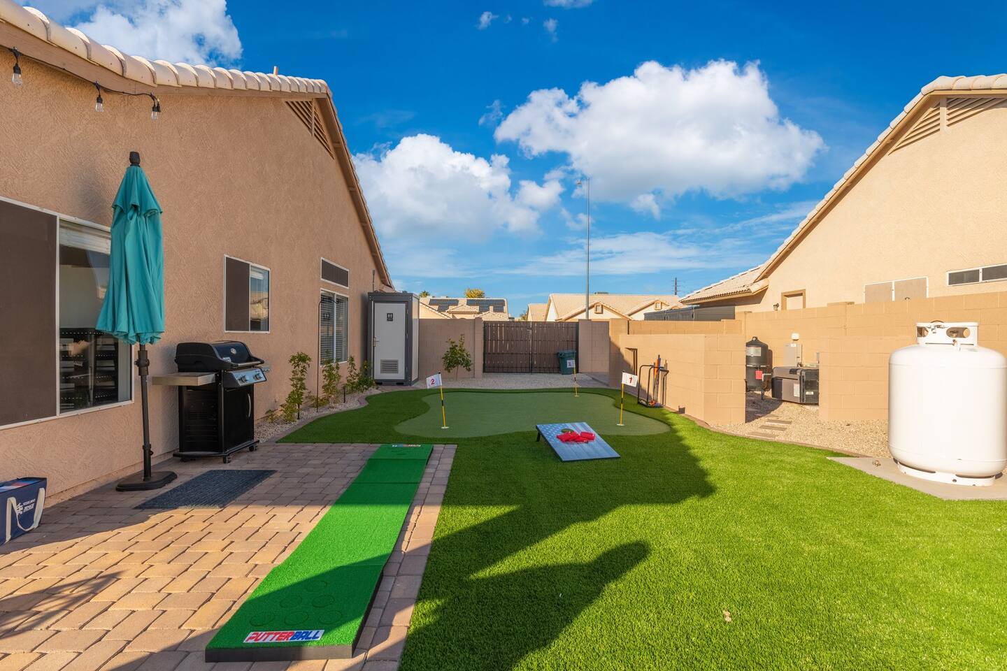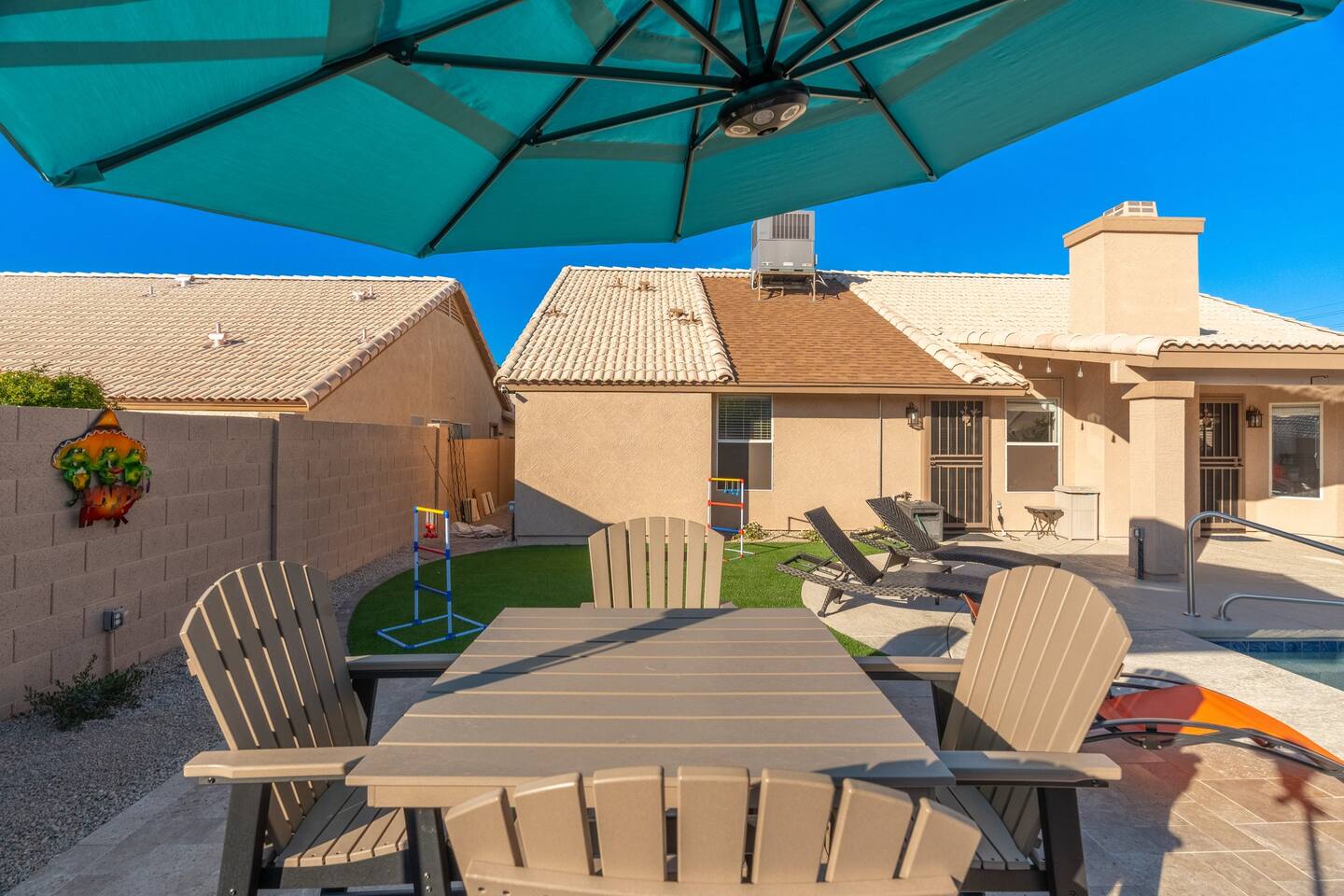 🏆Top 1% of airbnb listings in AZ, 30+ 5 Star reviews have raved about this home. "Desert Family Oasis" Family Oasis with a 5 Star-Resort style backyard! *Heated pool available, hot tub, golf putting green, gas fire pit, yard games, outdoor bathroom & much more! The stylish well-appointed home is in a quiet safe community in Mesa that boasts easy access to the highway. A full-time vacation rental, ideal for large families with kids-newborns, business travelers, solo adventurers & couples.