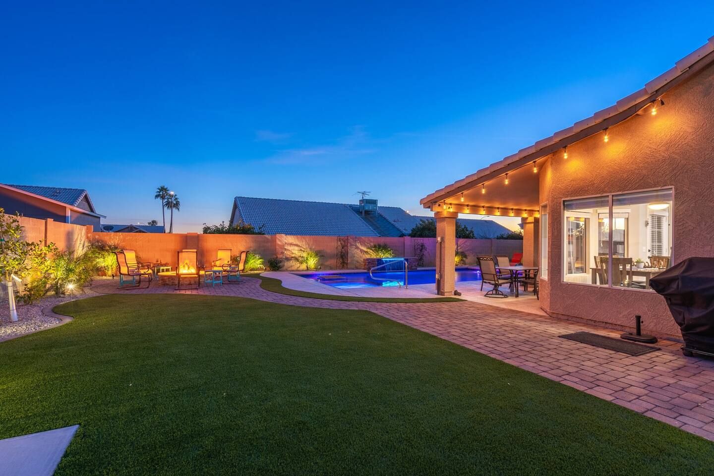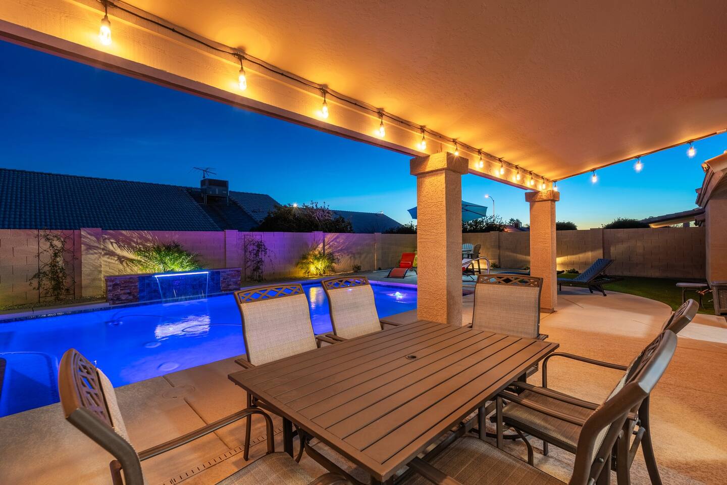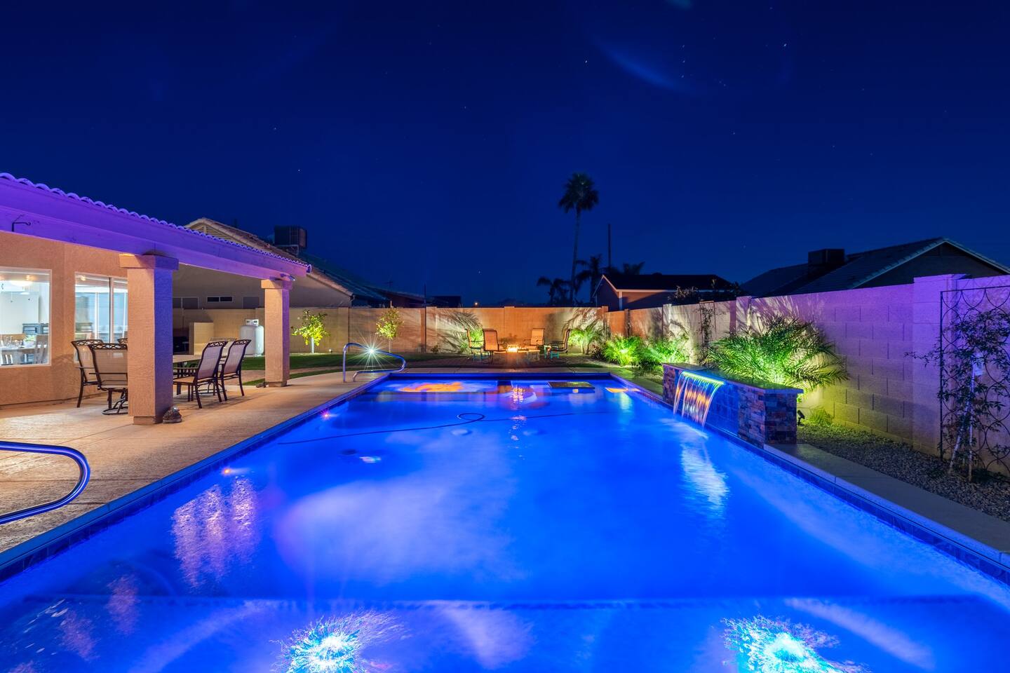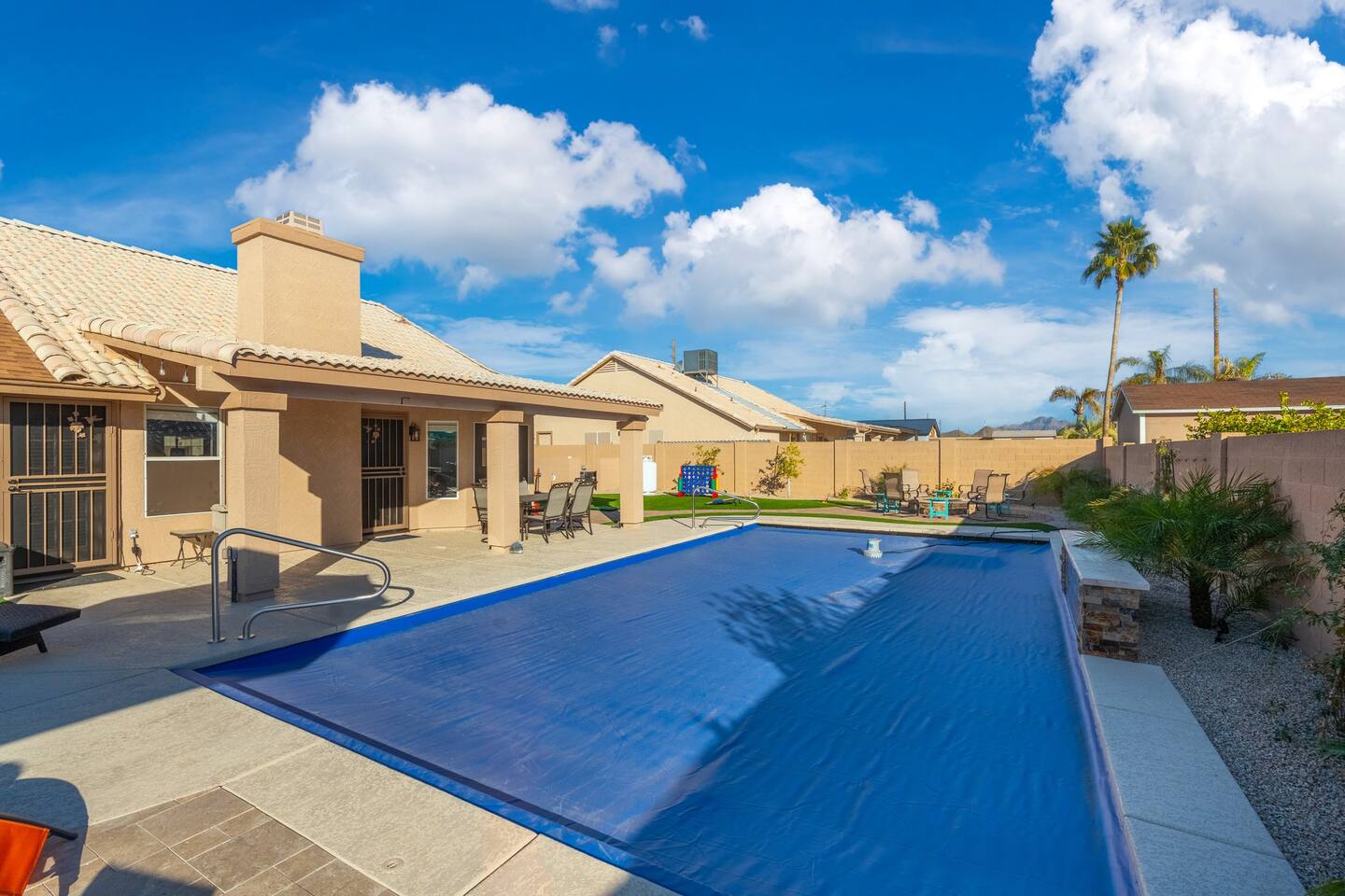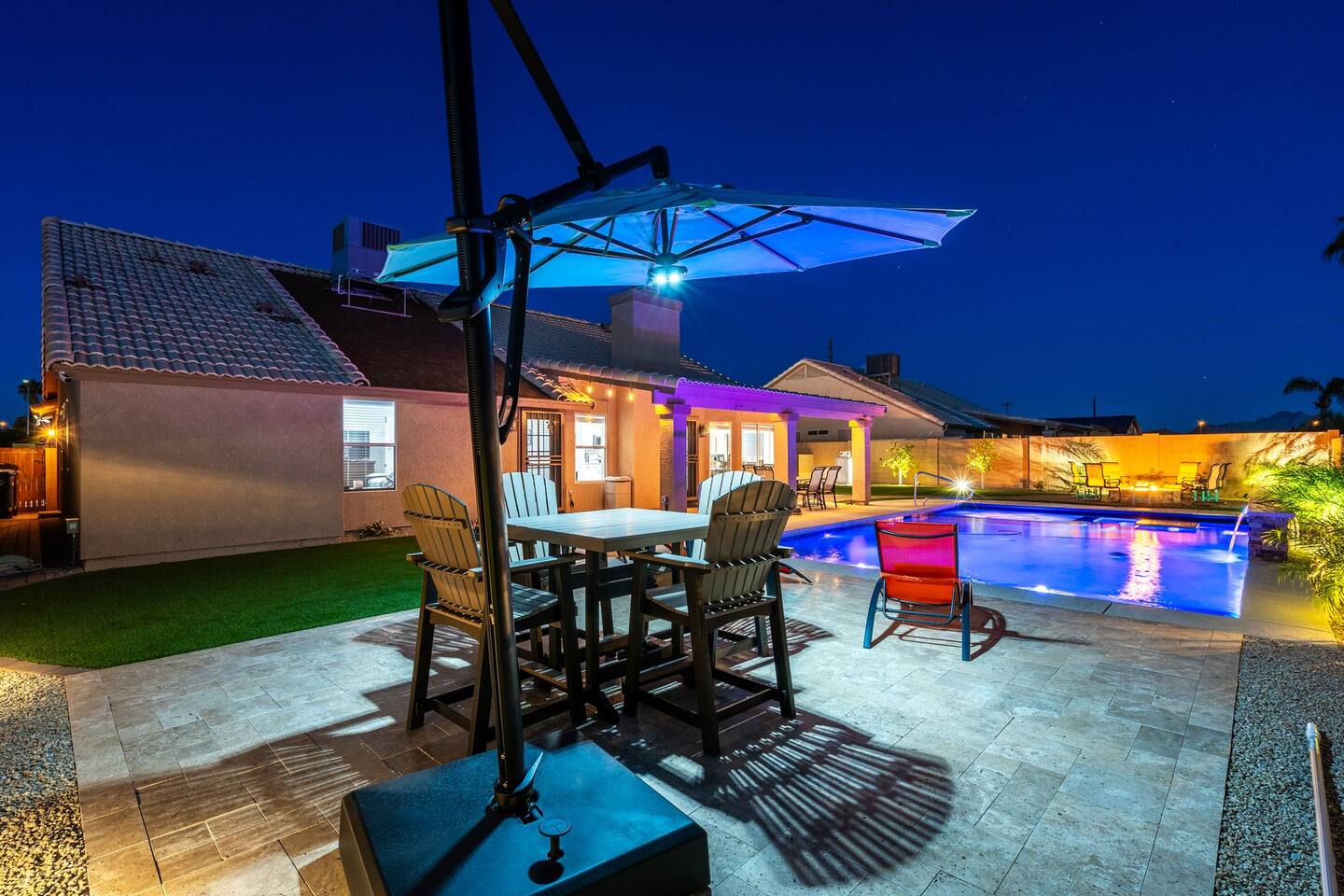 Looking for that family Oasis to call home while exploring Arizona, the search ends here! Unwind, make lifelong memories with family and friends in this cozy Mesa home with a backyard with all the amenities! This home features a brand new resort style pool, connected spa, Baja tanning ledge, table seating in the pool and LED changing pool lights that puts on a show at night. The backyard also features a gas firepit and golf putting green. The yard is spacious enough to play any yard games you desire and we provide several. *HEATED POOL: Pool heat is an additional charge of $60/ day & must be requested at the time of booking. The resort style pool features a custom fountain, a shallow Baja/tanning ledge & color changing led pool lights at night that put on a real show. This pool has all the cool technology! “Alexa, turn on pool theme 7.” All the pool modes aka themes can be controlled by just asking Alexa to turn them on! *SUMMER MONTHS: The pool equipment has the ability to cool the water down a bit so it’s more refreshing in Arizona summers. HOT TUB: Heating for this is provided no matter what. MASTER BEDROOM: The master bedroom has a king size mattress and an en-suite connected bathroom. 2ND & 3RD BEDROOMS: Both bedrooms have Queen size beds, closets and TV's. The living room cabinet underneath the tv also has a pullout Queen bed. (Queen cabinet bed) KITCHEN: The cook’s kitchen has an electric double oven for cooking, microwave, spices and much more for cooking large meals with the family. Make lasting memories & book a private chef with our concierge store. WIFI: Eero router for indoor & outdoor 5G WIFI. Enough speed for business Zoom meetings. WHY ME? 5-Star Professional Host- 100% Full time & Licensed Realtor if you need a home in AZ! 🏆40X Consecutive SuperHost since 2016 5-Star Host Store: Access to in-home massage’s, IV Drips to recover, bike & golf club rentals & much more. 5-STAR DIGITAL GUIDE: Loaded with all the great spots nearby & my Hidden Gems of the city! EXAMPLES Hidden gems tab: The Rusty Spur City Hall Steak house Bourbon & Bones steak house Dierks Bentley Bar & Grill Instant Book before the dates are gone or save the listing & tap the heart emoji!❤️ *HOT NEW LISTING ALERT: Professional host with 100’s of 5 star reviews! “This is the best host & Airbnb trip I’ve taken & I travel frequently.” “It’s obvious Matthew is a professional & this is the best experience I have had with Airbnb.” “I’d give more than 5 stars if possible & the location was perfect for our family trip!” WHO SHOULD BOOK? Families with kids & newborns: Pack N’ Play Crib, travel booster seat, child plates, Baja shallow ledge in pool for young ones, board games, books, puzzles & much more. Missing something you need? Let me know and we will do our best to accommodate. Business traveler friendly: Keypad Contactless Self-Check-in & checkout, 5G WIFI Router for blazing 5G internet speeds, Keurig Coffee stocked for the morning fuel & Torani syrups for a delicious latte. Avid travelers & explorers who like to be in their own compound, singles, golfers & sports minded individuals, mountain climbers. * No parties, birthday parties or unauthorized large gatherings are permitted at this property. The City of Mesa has a strict ordinance against nuisance gatherings at vacation rentals. WHY THIS HOME? Short Distance from Downtown Mesa with Amazing locally owned and operated Craft Breweries and Restaurants. Not far away is the vibrant downtown of Gilbert night life and shopping malls, take the 202 Red Mountain Freeway for fast 10 minute drive. PROPERTY HIGHLIGHTS *POOL HEAT: Additional $60 per day to heat the pool if requested. This must be requested and paid for at the time of booking. The heat will be active for the length of your stay. We suggest for a comfortable swim temperature to choose the pool heat option for travel dates in Oct-May 31st. CHILLER MODE: The pool can be cooled down a bit in the summer. POOL LIGHT: LED color changing lights are activated at sundown & will put on a show. OUTDOOR FIREPIT: Easy to use propane firepit. WIFI: 1 Gigabit Blazing Fast 5g 5G WIFI router for indoor & outdoor coverage. GAMES: Miniature Golf, Putter-Ball, Large JENGA, Ladder Toss, Ring Toss, Corn Hole INDOOR GAMES: Multiple Kid board games, Cards / chips, Kids cars and trucks, Fisher Price Laugh & Learn INFANTS: Please make sure to request these items so they are ready upon arrival. Pack n' Play travel crib, infant car seat, booster seat, child life jackets, etc. Need something else? Make a request & we will see what we can do. FOODIES: BBQ grill with propane for cooking & stocked spices. CLEANING: We have mandated an extensive sanitation & cleaning process. I’m one of the highest rated hosts in Arizona & my properties have more amenities than a high end hotel! *This property fills up fast so instant book before the dates are gone. TIP: If you like this beautiful property & want to save it to your favorites please click on the heart in the upper right hand corner.❤️ GUEST ACCESS Washer & dryer (Detergent provided) Pool towels (located in the laundry R.) Keurig Pro coffee: 1 cup or a pot Dishes, pots & pans, toaster, blender, etc. TVs controlled by the Roku app. GARAGE: Not available for guest use. INDOOR FIREPLACES: Easy instructions will be provided. OUTDOOR PROPANE FIREPIT: Easy instructions will be provided. Instant Book now before the dates are gone or save the listing & hit the heart emoji. ❤️ Thanks for looking & hope to host you soon! 🏆40X Consecutive SuperHost since 2016 TPT#: STR#: LIC24-09266