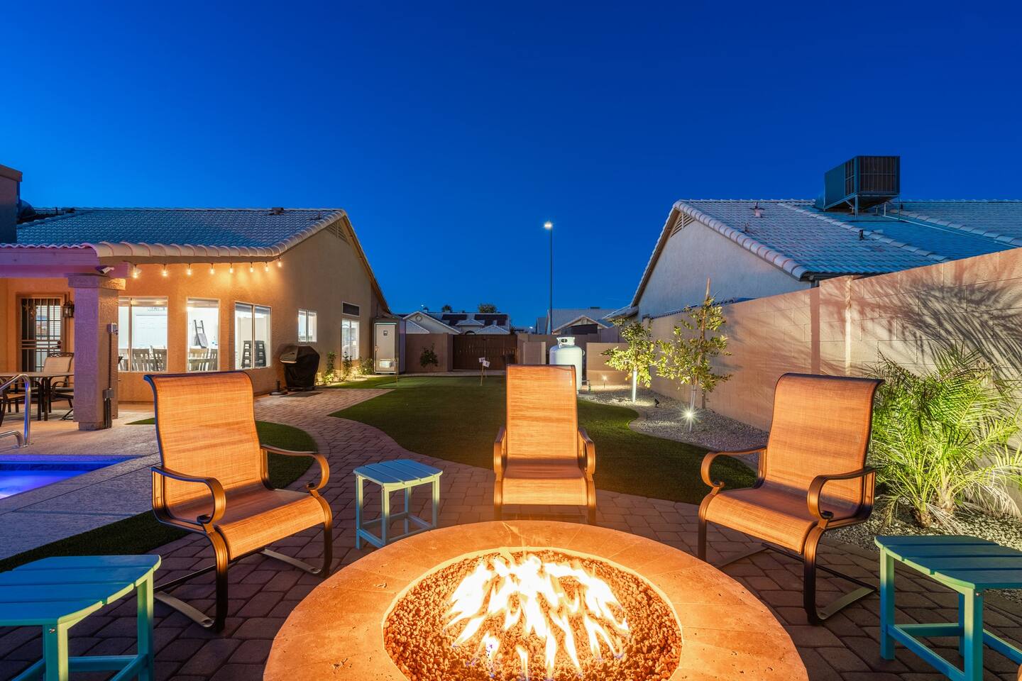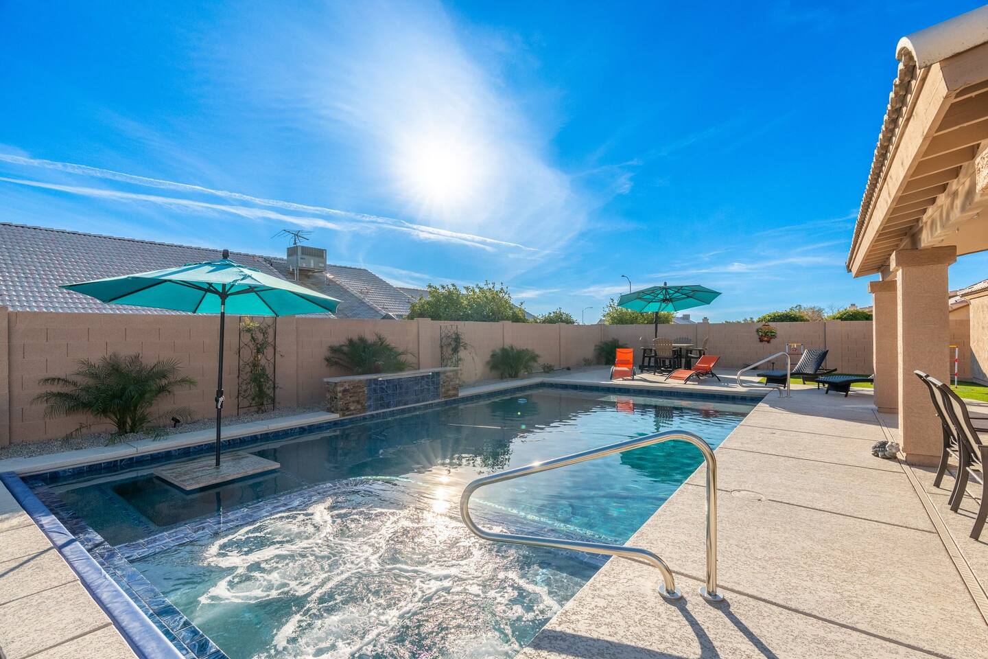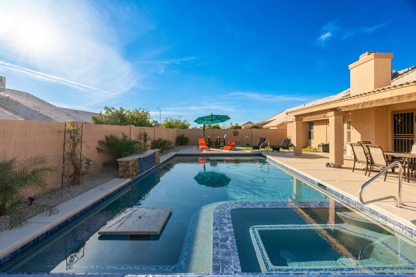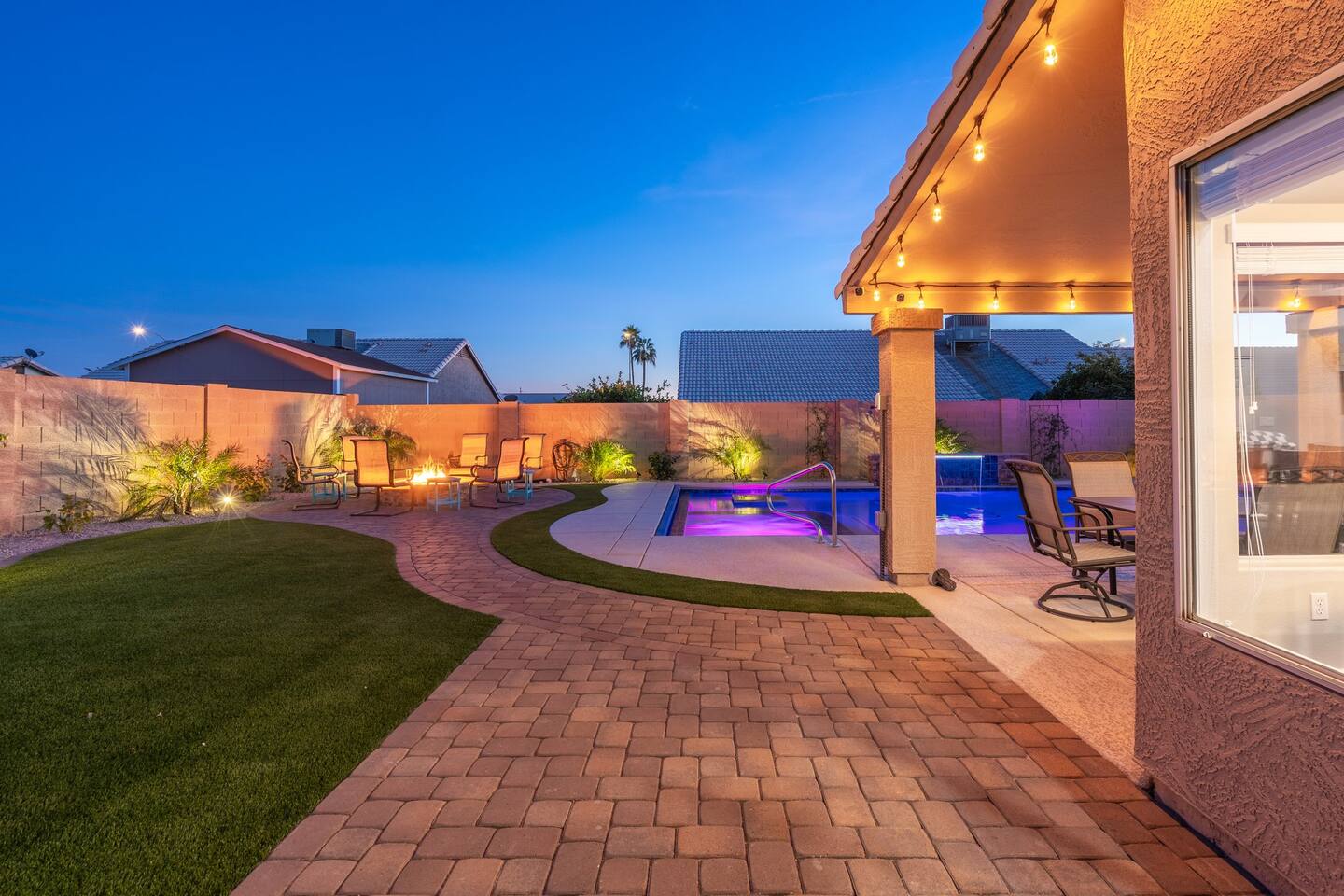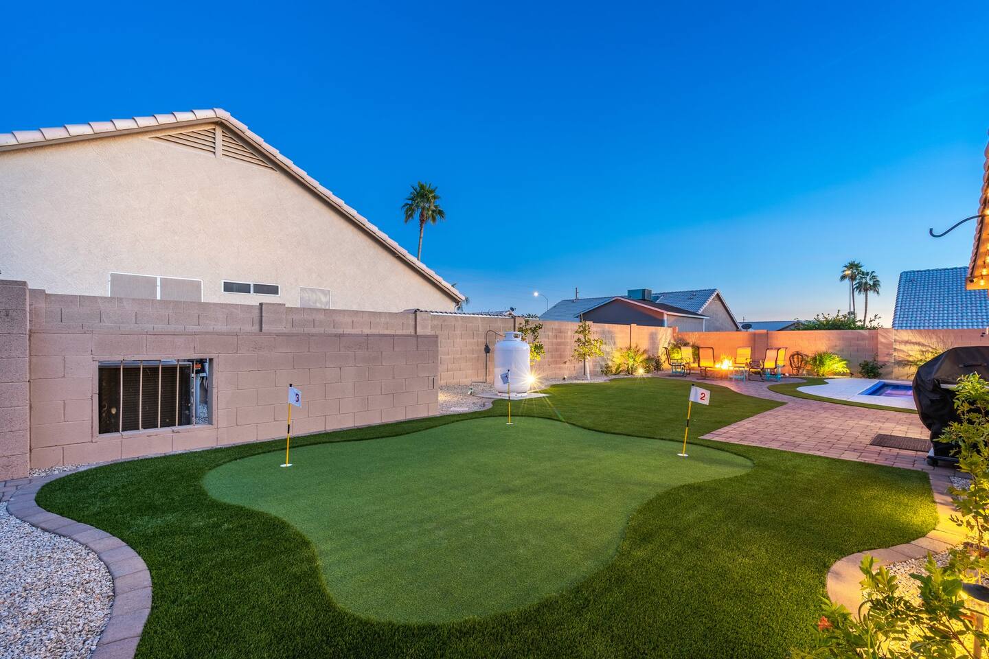 Looking for that family Oasis to call home while exploring Arizona, the search ends here! Unwind, make lifelong memories with family and friends in this cozy Mesa home with a backyard with all the amenities! This home features a brand new resort style pool, connected spa, Baja tanning ledge, table seating in the pool and LED changing pool lights that puts on a show at night. The backyard also features a gas firepit and golf putting green. The yard is spacious enough to play any yard games you desire and we provide several. *HEATED POOL: Pool heat is an additional charge of $60/ day & must be requested at the time of booking. The resort style pool features a custom fountain, a shallow Baja/tanning ledge & color changing led pool lights at night that put on a real show. This pool has all the cool technology! “Alexa, turn on pool theme 7.” All the pool modes aka themes can be controlled by just asking Alexa to turn them on! *SUMMER MONTHS: The pool equipment has the ability to cool the water down a bit so it’s more refreshing in Arizona summers. HOT TUB: Heating for this is provided no matter what. MASTER BEDROOM: The master bedroom has a king size mattress and an en-suite connected bathroom. 2ND & 3RD BEDROOMS: Both bedrooms have Queen size beds, closets and TV's. The living room cabinet underneath the tv also has a pullout Queen bed. (Queen cabinet bed) KITCHEN: The cook’s kitchen has an electric double oven for cooking, microwave, spices and much more for cooking large meals with the family. Make lasting memories & book a private chef with our concierge store. WIFI: Eero router for indoor & outdoor 5G WIFI. Enough speed for business Zoom meetings. WHY ME? 5-Star Professional Host- 100% Full time & Licensed Realtor if you need a home in AZ! 🏆40X Consecutive SuperHost since 2016 5-Star Host Store: Access to in-home massage’s, IV Drips to recover, bike & golf club rentals & much more. 5-STAR DIGITAL GUIDE: Loaded with all the great spots nearby & my Hidden Gems of the city! EXAMPLES Hidden gems tab: The Rusty Spur City Hall Steak house Bourbon & Bones steak house Dierks Bentley Bar & Grill Instant Book before the dates are gone or save the listing & tap the heart emoji!❤️ *HOT NEW LISTING ALERT: Professional host with 100’s of 5 star reviews! “This is the best host & Airbnb trip I’ve taken & I travel frequently.” “It’s obvious Matthew is a professional & this is the best experience I have had with Airbnb.” “I’d give more than 5 stars if possible & the location was perfect for our family trip!” WHO SHOULD BOOK? Families with kids & newborns: Pack N’ Play Crib, travel booster seat, child plates, Baja shallow ledge in pool for young ones, board games, books, puzzles & much more. Missing something you need? Let me know and we will do our best to accommodate. Business traveler friendly: Keypad Contactless Self-Check-in & checkout, 5G WIFI Router for blazing 5G internet speeds, Keurig Coffee stocked for the morning fuel & Torani syrups for a delicious latte. Avid travelers & explorers who like to be in their own compound, singles, golfers & sports minded individuals, mountain climbers. * No parties, birthday parties or unauthorized large gatherings are permitted at this property. The City of Mesa has a strict ordinance against nuisance gatherings at vacation rentals. WHY THIS HOME? Short Distance from Downtown Mesa with Amazing locally owned and operated Craft Breweries and Restaurants. Not far away is the vibrant downtown of Gilbert night life and shopping malls, take the 202 Red Mountain Freeway for fast 10 minute drive. PROPERTY HIGHLIGHTS *POOL HEAT: Additional $60 per day to heat the pool if requested. This must be requested and paid for at the time of booking. The heat will be active for the length of your stay. We suggest for a comfortable swim temperature to choose the pool heat option for travel dates in Oct-May 31st. CHILLER MODE: The pool can be cooled down a bit in the summer. POOL LIGHT: LED color changing lights are activated at sundown & will put on a show. OUTDOOR FIREPIT: Easy to use propane firepit. WIFI: 1 Gigabit Blazing Fast 5g 5G WIFI router for indoor & outdoor coverage. GAMES: Miniature Golf, Putter-Ball, Large JENGA, Ladder Toss, Ring Toss, Corn Hole INDOOR GAMES: Multiple Kid board games, Cards / chips, Kids cars and trucks, Fisher Price Laugh & Learn INFANTS: Please make sure to request these items so they are ready upon arrival. Pack n' Play travel crib, infant car seat, booster seat, child life jackets, etc. Need something else? Make a request & we will see what we can do. FOODIES: BBQ grill with propane for cooking & stocked spices. CLEANING: We have mandated an extensive sanitation & cleaning process. I’m one of the highest rated hosts in Arizona & my properties have more amenities than a high end hotel! *This property fills up fast so instant book before the dates are gone. TIP: If you like this beautiful property & want to save it to your favorites please click on the heart in the upper right hand corner.❤️ GUEST ACCESS Washer & dryer (Detergent provided) Pool towels (located in the laundry R.) Keurig Pro coffee: 1 cup or a pot Dishes, pots & pans, toaster, blender, etc. TVs controlled by the Roku app. GARAGE: Not available for guest use. INDOOR FIREPLACES: Easy instructions will be provided. OUTDOOR PROPANE FIREPIT: Easy instructions will be provided. Instant Book now before the dates are gone or save the listing & hit the heart emoji. ❤️ Thanks for looking & hope to host you soon! 🏆40X Consecutive SuperHost since 2016 TPT#: STR#: LIC24-09266