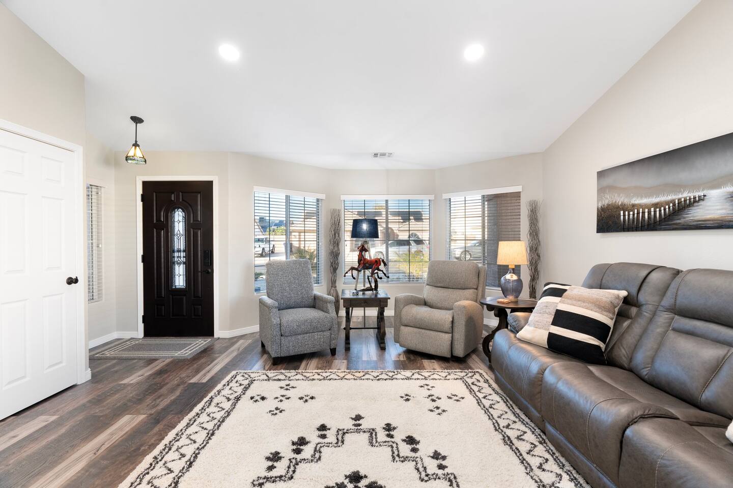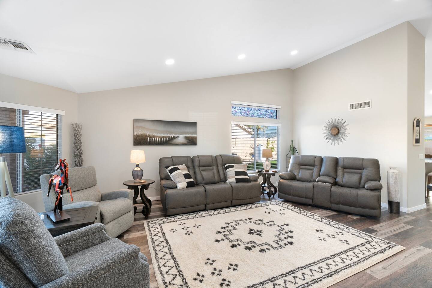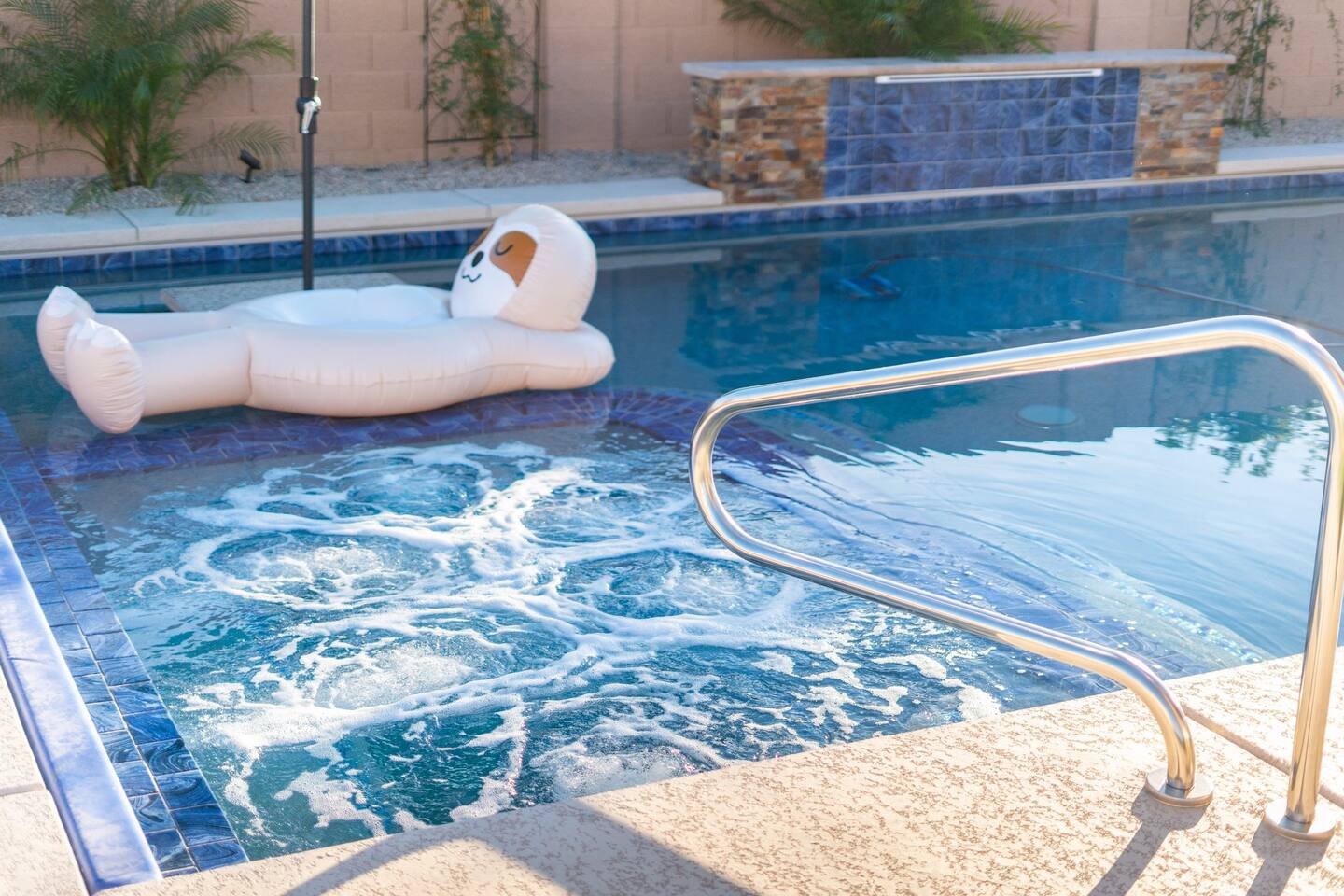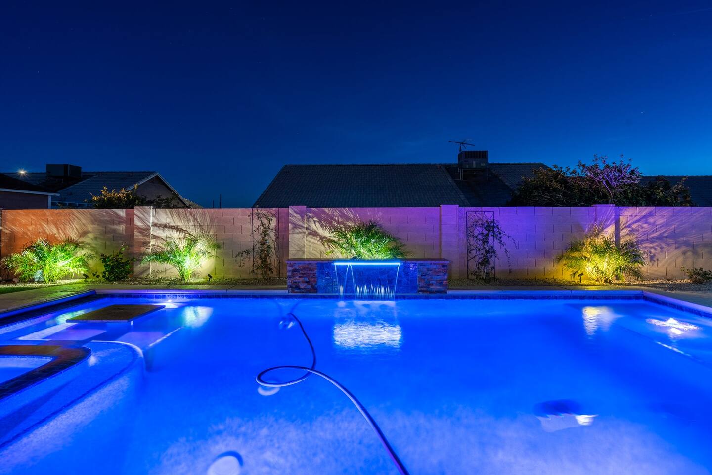 Looking for that family Oasis to call home while exploring Arizona, the search ends here! Unwind, make lifelong memories with family and friends in this cozy Mesa home with a backyard with all the amenities! This home features a brand new resort style pool, connected spa, Baja tanning ledge, table seating in the pool and LED changing pool lights that puts on a show at night. The backyard also features a gas firepit and golf putting green. The yard is spacious enough to play any yard games you desire and we provide several. *HEATED POOL: Pool heat is an additional charge of $60/ day & must be requested at the time of booking. The resort style pool features a custom fountain, a shallow Baja/tanning ledge & color changing led pool lights at night that put on a real show. This pool has all the cool technology! “Alexa, turn on pool theme 7.” All the pool modes aka themes can be controlled by just asking Alexa to turn them on! *SUMMER MONTHS: The pool equipment has the ability to cool the water down a bit so it’s more refreshing in Arizona summers. HOT TUB: Heating for this is provided no matter what. MASTER BEDROOM: The master bedroom has a king size mattress and an en-suite connected bathroom. 2ND & 3RD BEDROOMS: Both bedrooms have Queen size beds, closets and TV's. The living room cabinet underneath the tv also has a pullout Queen bed. (Queen cabinet bed) KITCHEN: The cook’s kitchen has an electric double oven for cooking, microwave, spices and much more for cooking large meals with the family. Make lasting memories & book a private chef with our concierge store. WIFI: Eero router for indoor & outdoor 5G WIFI. Enough speed for business Zoom meetings. WHY ME? 5-Star Professional Host- 100% Full time & Licensed Realtor if you need a home in AZ! 🏆40X Consecutive SuperHost since 2016 5-Star Host Store: Access to in-home massage’s, IV Drips to recover, bike & golf club rentals & much more. 5-STAR DIGITAL GUIDE: Loaded with all the great spots nearby & my Hidden Gems of the city! EXAMPLES Hidden gems tab: The Rusty Spur City Hall Steak house Bourbon & Bones steak house Dierks Bentley Bar & Grill Instant Book before the dates are gone or save the listing & tap the heart emoji!❤️ *HOT NEW LISTING ALERT: Professional host with 100’s of 5 star reviews! “This is the best host & Airbnb trip I’ve taken & I travel frequently.” “It’s obvious Matthew is a professional & this is the best experience I have had with Airbnb.” “I’d give more than 5 stars if possible & the location was perfect for our family trip!” WHO SHOULD BOOK? Families with kids & newborns: Pack N’ Play Crib, travel booster seat, child plates, Baja shallow ledge in pool for young ones, board games, books, puzzles & much more. Missing something you need? Let me know and we will do our best to accommodate. Business traveler friendly: Keypad Contactless Self-Check-in & checkout, 5G WIFI Router for blazing 5G internet speeds, Keurig Coffee stocked for the morning fuel & Torani syrups for a delicious latte. Avid travelers & explorers who like to be in their own compound, singles, golfers & sports minded individuals, mountain climbers. * No parties, birthday parties or unauthorized large gatherings are permitted at this property. The City of Mesa has a strict ordinance against nuisance gatherings at vacation rentals. WHY THIS HOME? Short Distance from Downtown Mesa with Amazing locally owned and operated Craft Breweries and Restaurants. Not far away is the vibrant downtown of Gilbert night life and shopping malls, take the 202 Red Mountain Freeway for fast 10 minute drive. PROPERTY HIGHLIGHTS *POOL HEAT: Additional $60 per day to heat the pool if requested. This must be requested and paid for at the time of booking. The heat will be active for the length of your stay. We suggest for a comfortable swim temperature to choose the pool heat option for travel dates in Oct-May 31st. CHILLER MODE: The pool can be cooled down a bit in the summer. POOL LIGHT: LED color changing lights are activated at sundown & will put on a show. OUTDOOR FIREPIT: Easy to use propane firepit. WIFI: 1 Gigabit Blazing Fast 5g 5G WIFI router for indoor & outdoor coverage. GAMES: Miniature Golf, Putter-Ball, Large JENGA, Ladder Toss, Ring Toss, Corn Hole INDOOR GAMES: Multiple Kid board games, Cards / chips, Kids cars and trucks, Fisher Price Laugh & Learn INFANTS: Please make sure to request these items so they are ready upon arrival. Pack n' Play travel crib, infant car seat, booster seat, child life jackets, etc. Need something else? Make a request & we will see what we can do. FOODIES: BBQ grill with propane for cooking & stocked spices. CLEANING: We have mandated an extensive sanitation & cleaning process. I’m one of the highest rated hosts in Arizona & my properties have more amenities than a high end hotel! *This property fills up fast so instant book before the dates are gone. TIP: If you like this beautiful property & want to save it to your favorites please click on the heart in the upper right hand corner.❤️ GUEST ACCESS Washer & dryer (Detergent provided) Pool towels (located in the laundry R.) Keurig Pro coffee: 1 cup or a pot Dishes, pots & pans, toaster, blender, etc. TVs controlled by the Roku app. GARAGE: Not available for guest use. INDOOR FIREPLACES: Easy instructions will be provided. OUTDOOR PROPANE FIREPIT: Easy instructions will be provided. Instant Book now before the dates are gone or save the listing & hit the heart emoji. ❤️ Thanks for looking & hope to host you soon! 🏆40X Consecutive SuperHost since 2016 TPT#: STR#: LIC24-09266