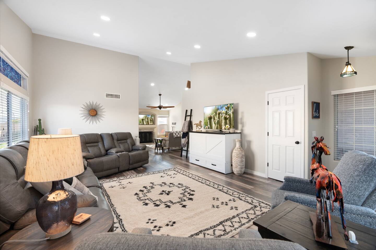 The entire home except these areas below. GARAGE: Will be locked & not accessible for guests use. MAIDS CLOSET: Will be locked & not accessible. POOL EQUIPMENT: Guests are not permitted to touch any equipment in this area, this is all automated equipment on timers & very expensive. (pool motors, filter, automation computer, pool heater, etc.) If something seems off with the pool please contact me immediately. INDOOR FIREPLACE: Easy instructions will be provided on how to use. OUTDOOR PROPANE FIREPIT: Easy instructions will be provided on how to use. POOL SOLAR COVER: Easy instructions will be provided on how to use.