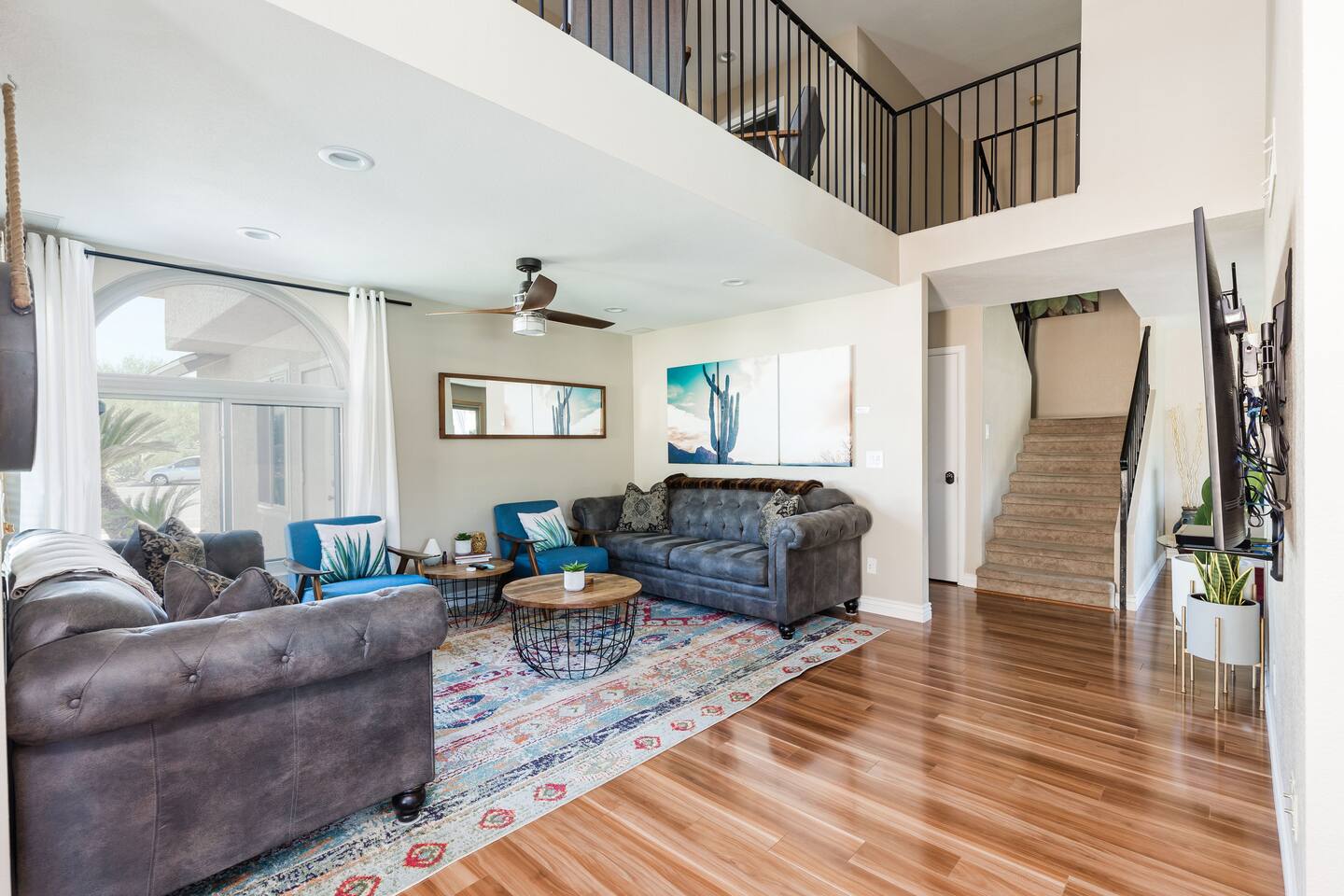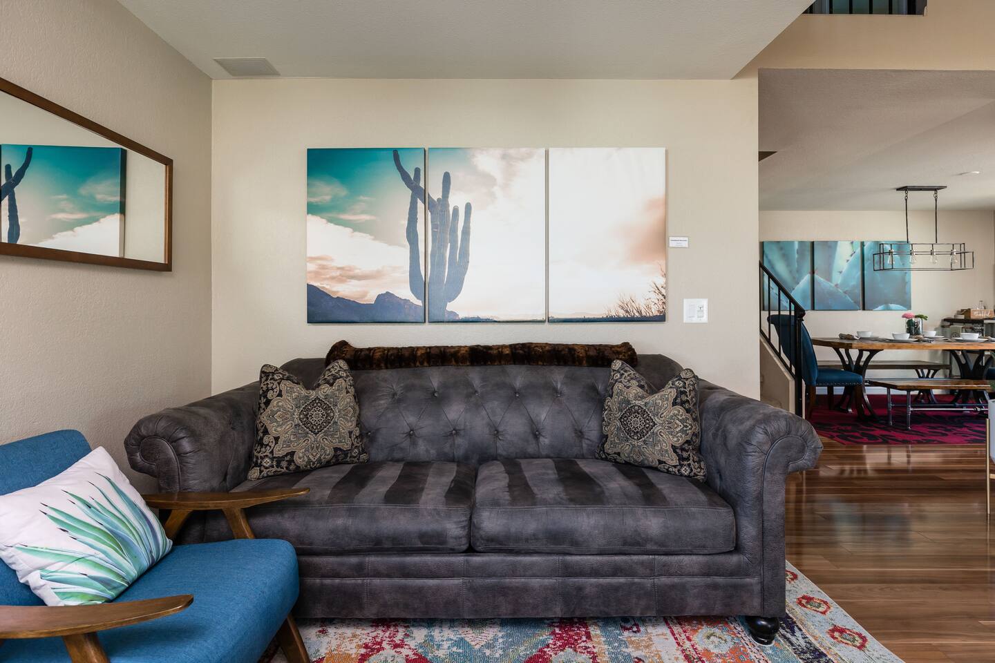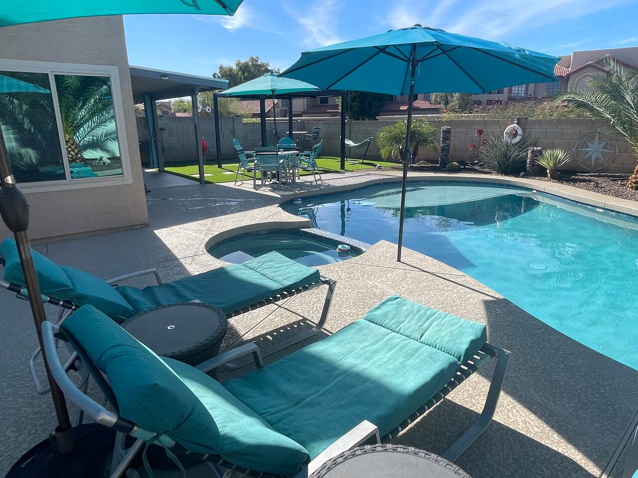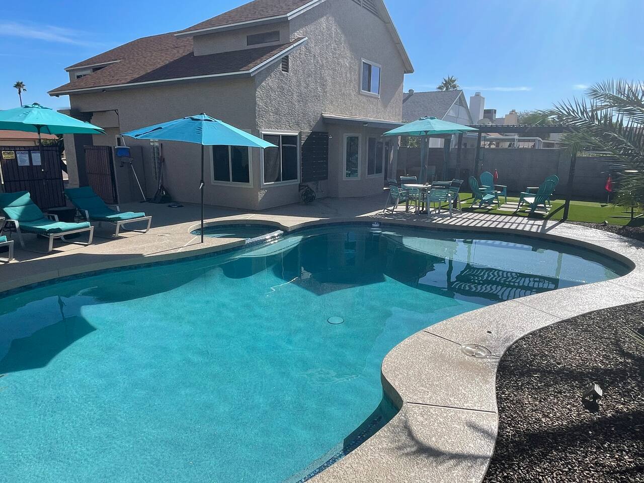 🏆Top 1% of airbnb listings in AZ & 80+ 5 Star reviews have raved about this home. 5-Star Resort style backyard! *Heated Pool & Spa, Arcade Room, Putting green & Cinema-Game Loft. A short trip to Old Town Scottsdale & Tempe’s ASU. The stylish well-appointed home is in a quiet safe community with easy access to the 101. A full-time vacation rental, ideal for families with kids-newborns, business travelers,solo adventurers & couples. 5G Wi-Fi6 router for Zoom meetings. POOL HEAT SEE DETAILS