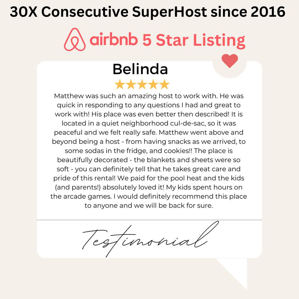 I'm happy to host respectful & responsible travelers who will take care of this special home as if it was their own. 100's of 5-star reviews tell my true dedication to be a top-notch host. Take a chance to scan the countless reviews about "having the best Airbnb experience to date." POOL: $65 per day additional to have the pool heater activated during your stay for dates from October- May 31st. This must be paid for at the time of booking. *MAKE SURE TO REQUEST POOL HEAT* RATES: They fluctuate daily due to this properties high demand & events happening in town. GARAGE: locked & not accessible for guest use. The driveway is large enough to park 3-cars with ease. Instant Book now before the dates are gone or save the listing & hit the heart emoji.❤️ Thanks for looking & hope to host you soon! 🏆40X Consecutive SuperHost since 2016