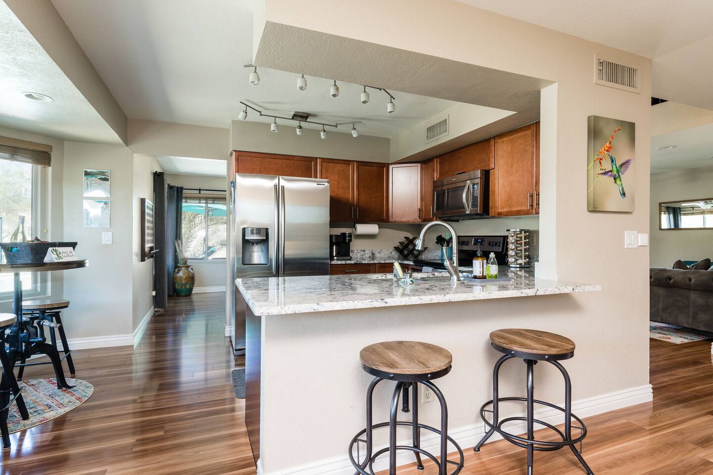 “The Scottsdale Family Raptor Retreat!” 🏆Top 1% of listings in AZ & 80+ 5 Star reviews have raved about this home. Looking for that Oasis to call home while exploring this historic city, the search ends here! Unwind, make lifelong memories with family and friends in this spacious yet cozy home. This already 5-star listing completed a full pool & backyard remodel in the last year. The sparkling Belize blue pool has a giant Baja/Tanning ledge, this is great for small kids or a place to lay in shallow water. A new putting green, upgraded arcade room and cinema loft. Professional photos of the remodel are coming soon to replace my I-Phone pictures. WHY THIS LOCATION? OLD TOWN SCOTTSDALE: 8-minute Uber. Every Thursday at 8 pm is the Main Street Art Walk & many galleries serve free wine! OLD TOWN FARMERS MARKET: 10-minute Uber. Oct 7th -April, every Saturday 8 am to 1pm. SCOTTSDALE STADIUM: ⚾️ 10-minute Uber. Homefield of the San Francisco Giants spring training. SALT RIVER FIELDS: 13-minute Uber & home of many MLB spring teams. SLOAN PARK: 7-minute Uber & home of the Chicago Cubs. SCOTTSDALE FASHION SQUARE MALL: One of the best malls in the U.S., 12-minute Uber. SCOTTSDALE CIVIC CENTER: 8-Min Uber drive or less. Multi-million-dollar outdoor event space where 70+events are held each year & The Taste of Scottsdale. ARIZONA STATE UNIVERSITY: 4.3 miles to the campus, 10-minutes or less drive. WHY ME? 5-Star Professional Host- 100% Full time & Licensed Realtor if you need a home in AZ! 🏆40X Consecutive SuperHost since 2016 5-Star Host Store: Access to in-home massage’s, IV Drips to recover, bike & golf club rentals & much more. 5-Star digital guidebook: Loaded with all the great spots nearby & my Hidden Gems of the city! EXAMPLES The Rusty Spur: 8-min Uber, HIDDEN GEM section City Hall Steak House: 8-min Uber. Bourbon & Bones Steak House: 8-min Uber. Dierks Bentley Bar & Grill: 10-min Uber. All the fun in Old Town Scottsdale is an 8-10 min Uber to any location. Instant Book before the dates are gone or save the listing & tap the heart emoji.❤️ 🏆Top 1% of listings in AZ & 80+ 5 Star reviews have raved about this home. “This is the best host & Airbnb trip I’ve taken & I travel frequently.” “It’s obvious Matthew is a professional & this is the best experience I have had with Airbnb.” “I’d give more than 5 stars if possible & the location was perfect for our family trip!” WHO SHOULD BOOK? Families with kids & newborns: Full Size crib, Pack N’ Play Crib, Graco Highchair, child plates, Baja shallow ledge in pool for young ones, Mini Sega Genesis, Arcade Room, board games, books, puzzles & much more. Business traveler friendly: Keypad Contactless Self-Check-in & checkout, ASUS WiFi6 Gaming Router for blazing 5G internet speeds, Keurig Coffee stocked for the morning fuel. Avid travelers & explorers who like to be close to town, singles, golfers & sports minded individuals, mountain climbers. (Camelback Mtn is a 15-18-minute drive to climbing access.) * No parties, birthday parties or large gatherings are permitted at this property. Scottsdale has a strict ordinance against parties or nuisance gatherings at vacation rentals. PROPERTY HIGHLIGHTS *POOL HEAT: Additional $65 per day to heat the pool if requested. This must be requested and paid for at the time of booking. The heat will be active for the length of your stay. We suggest for a comfortable swim temperature to choose the pool heat option for travel dates in Oct-May 31st. During the winter months the pool will have a pool cover to retain the heat at night, it's just a push of a button to remove or cover. POOL LIGHT: LED color changing light is activated at sundown & will put on a show. SPA: Will be active no matter what, at no charge. ("Alexa turn on the spa jets!' this actually works.) WIFI: Blazing Fast 5g ASUS - Rapture GT-AX11000 Tri-band WiFi6 Gaming Router RAPTOR ARCADE ROOM: Foosball table, Connect 4, Arcade machine with 10,000 classics and Star Wars digital pinball machine, which is quite addicting. Bring some quarters for the old school candy machine! " Alexa, turn on the Arcade Lights!' This turns on the neon Pacman & retro led lights! CINEMA/GAME LOFT: Marantz & Sonos sound powers this room. Theater seating with USB plugs and led lighting. 60+classic Sega video games, board games, yoga mats, puzzles, books, DVD’s for kids of all ages! FOODIES: Weber grill with propane for cooking & stocked spices. CLEANING: We have mandated an extensive sanitation and cleaning processes. I’m one of the highest rated hosts in Scottsdale & my properties have more amenities than a high end hotel! *This property fills up fast so instant book before the dates are gone. 🏆40X SuperHost status since 2017 Matthew TIP: If you like this beautiful property & want to save it to your favorites please click on the heart in the upper right hand corner.❤️ TPT#: 21403548 STR#: 2024076