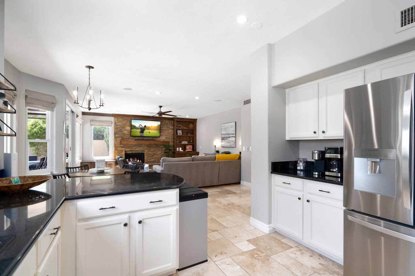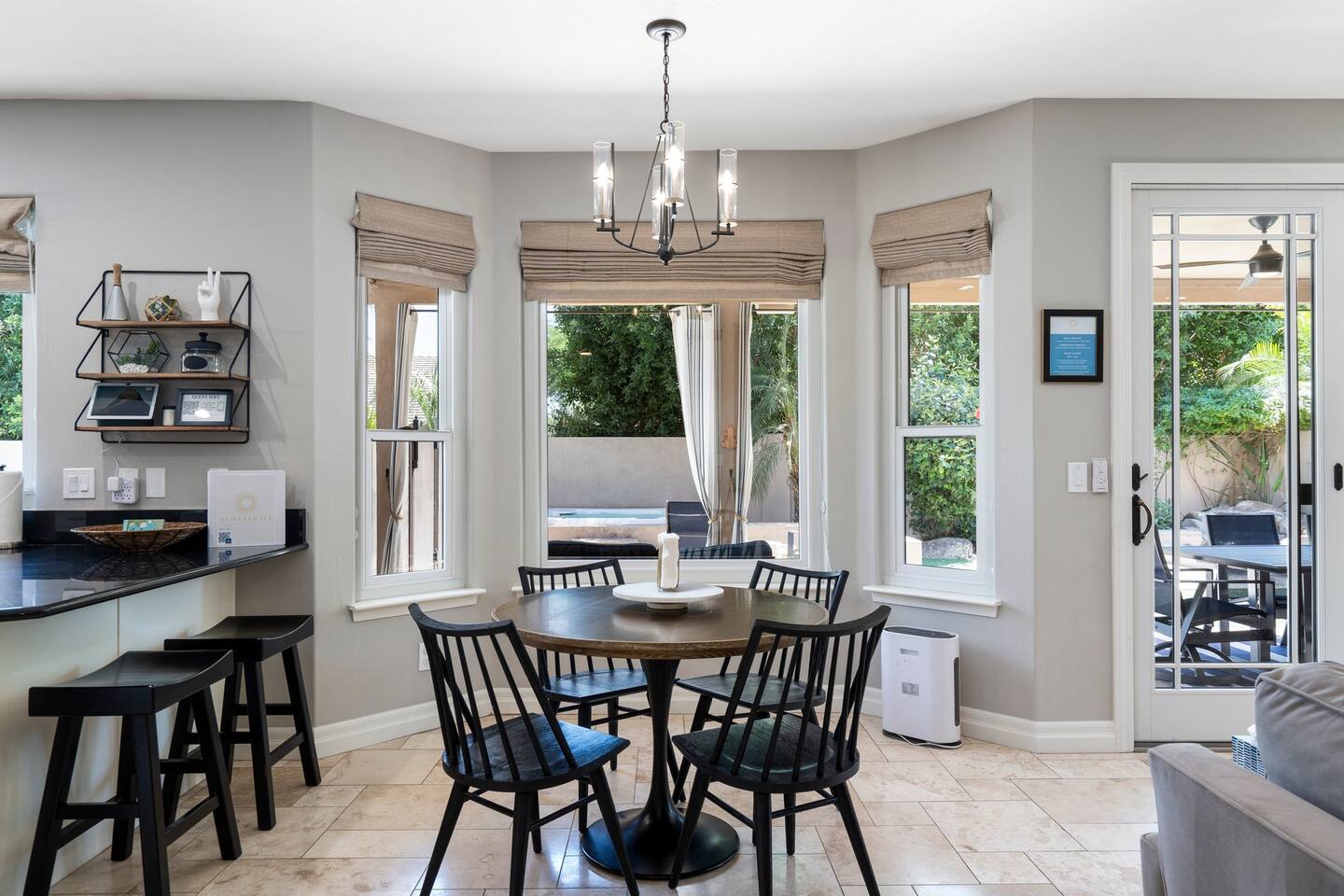 Paradise Lane, nestled in one of Scottsdale’s most prominent zip codes. This family oasis is the perfect balance of location, space, & amenities including a *heated pool, relaxing outdoor spa, waterfall, BBQ grille & much more. A short walk to the 4 diamond Westin Kierland Resort & 7-minute drive to the world class Mayo Clinic. Full kitchen, living room, indoor fireplace, TV’s throughout, outdoor fire pit, resort style palm trees & landscaping. 5G blazing mesh WIFI router for Zoom meetings.